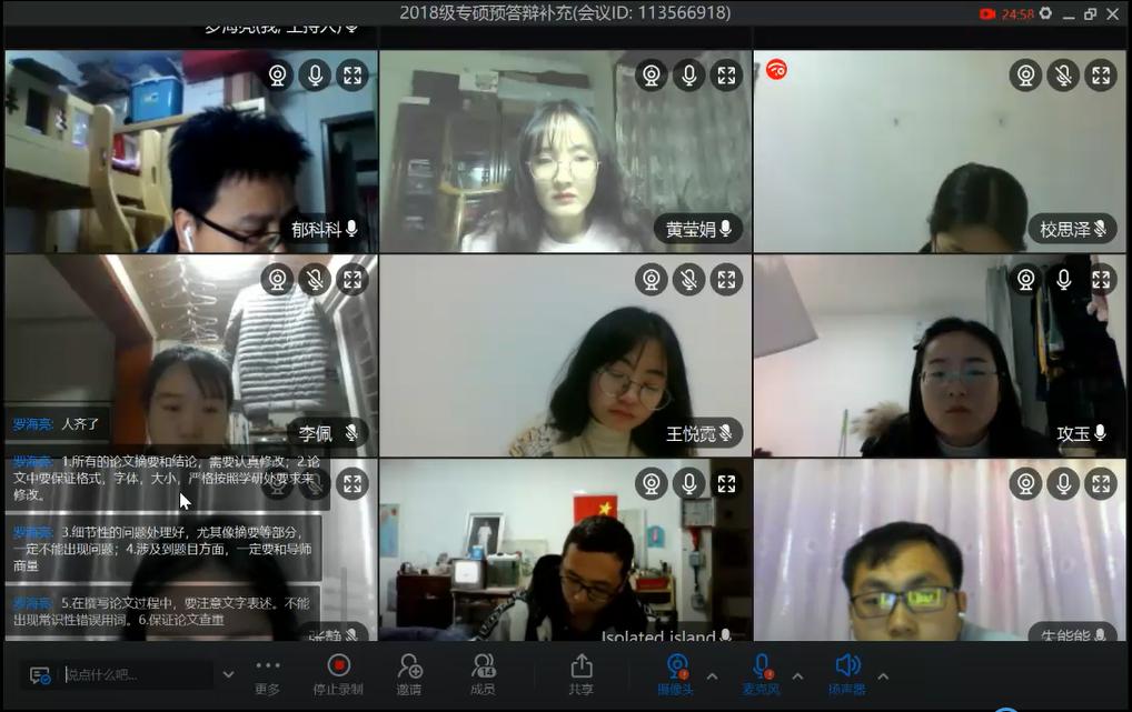 参与预答辩的师生表示,虽然线上预答辩是一种新的尝试,但师生之间也能进行充分的交流沟通,预答辩流程规范性和论文指导效果丝毫没打折扣,从而保证了我校研究生学位论文的质量。(学科建设与研究生教育管理处 文、图/胡帆 审核/赵天绪)