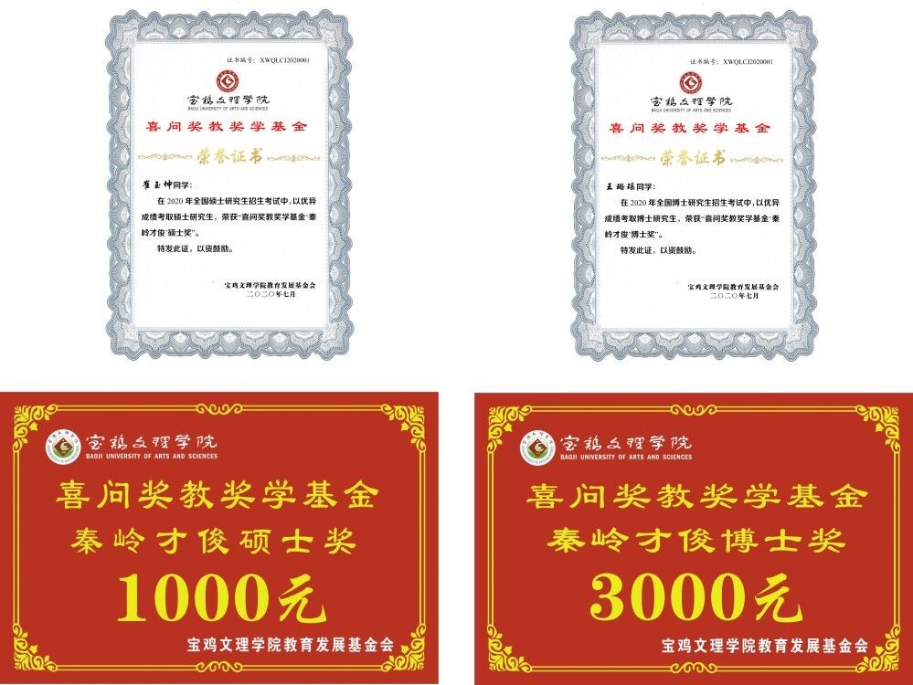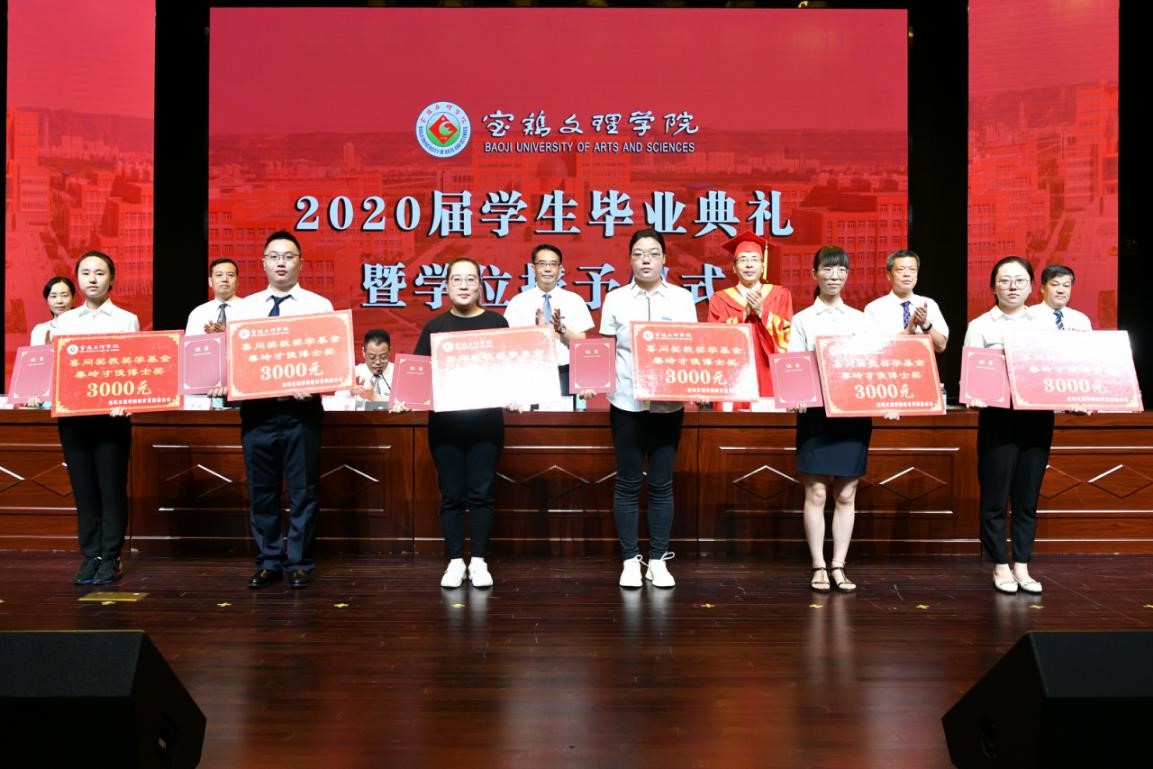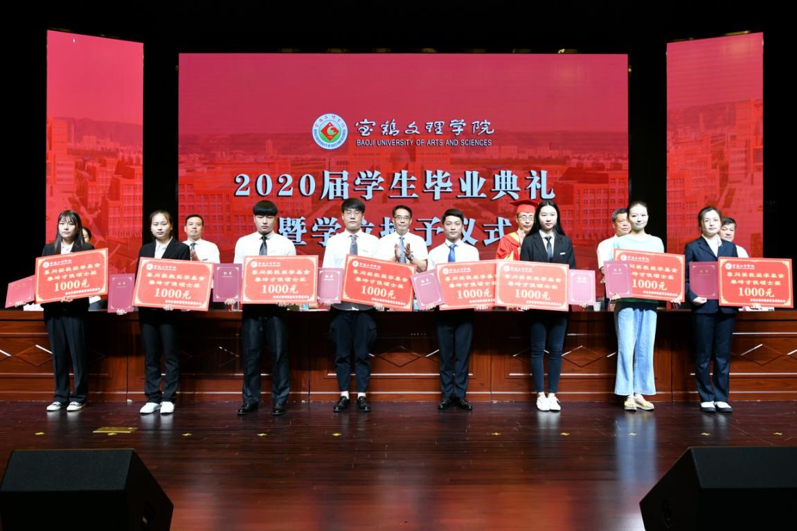 7月16日上午,在我校2020届学生毕业典礼暨学位授予仪式上,学校党政领导为荣获“喜问奖教奖学基金‘秦岭才俊’硕士奖、博士奖”代表颁发了荣誉证书和奖金。经各学院上报,学生处、学研处审定,教育发展基金会、捐赠人审核,李平等6名考取博士的2020届硕士毕业生荣获“喜问奖教奖学基金‘秦岭才俊’博士奖”,每人发放奖金3000元;张月等451名考取硕士的2020届本科毕业生荣获“喜问奖教奖学基金‘秦岭才俊’硕士奖”,每人发放奖金1000元。