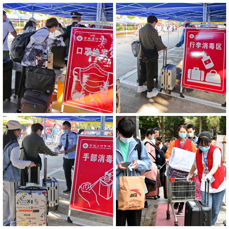 在疫情防控常态化背景下,学校统筹安排新生接待工作,在校门口实行“一换二消三测四核五进”。迎新期间,全体教职员工以饱满的工作热情全身心投入到工作中,热情接待,周到服务,耐心细致地解答新生提出的各种问题。招生就业处积极协调,租用手推车、小型客运车等帮助新生搬运行李。校团委、学生会和各二级学院分别组建学生志愿者服务团队,热情引导新生办理入学报到手续,帮助新生适应学校环境,尽快融入大学生活。