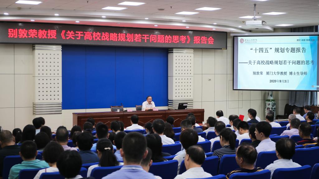 9月3日上午,厦门大学教育研究院院长、博士生导师别敦荣教授在高新校区木铎厅作了题为《关于高校战略规划若干问题的思考》的报告。校领导及全校副处级以上干部聆听了报告,报告会由副校长王富平主持。