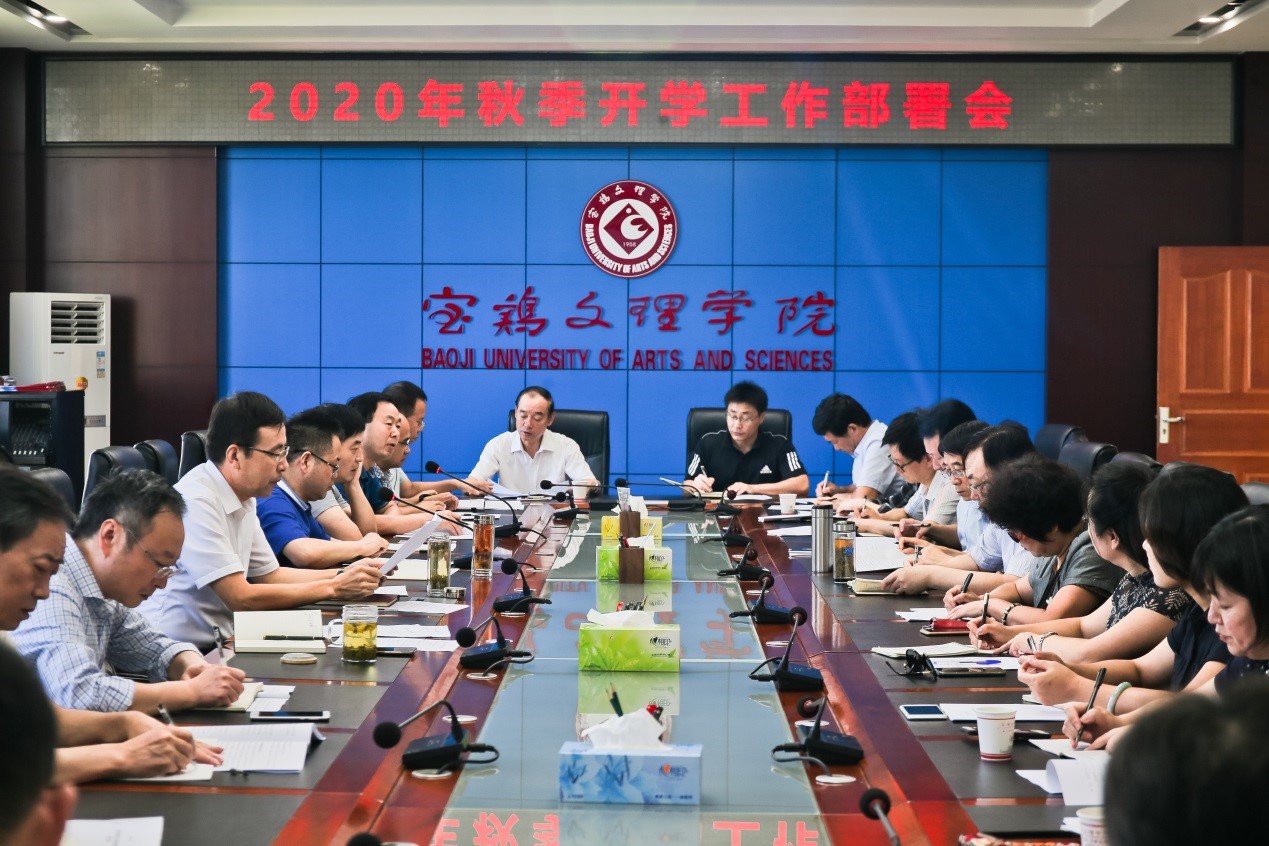 郭霄鹏在讲话中就切实做好2020年秋季学期开学工作提出了五点要求。他强调,一是要加强组织领导,持续做好新冠疫情防控工作。要提高政治站位,强化大局意识,夯实主体责任,克服麻痹大意和松懈思想,严格落实上级部门关于高校师生返校开学疫情防控的要求,按照《宝鸡文理学院2020年秋季学生返校工作方案》,进一步健全疫情防控工作体系,强化疫情防控宣传教育,认真落实各项疫情防控措施,确保每一位师生健康进入校园,确保校园稳定安全。二是要加强统筹协调,全力做好开学各项准备工作。要切实做好学生宿舍、餐厅、教室、实验室等重点部位的卫生保洁、消毒消杀、开窗通风等相关工作,为师生创设干净、卫生、整洁、安全的工作学习和生活环境。三是要上下联动,切实做好教学准备工作。要抓好教学计划的落实,做好教材等教学设施的配备,做好教情和学情分析,及时查漏补缺,促进线上线下教学的有效衔接,营造良好教学氛围,确保学校正常教学秩序,不断提高教育教学质量。四是各单位要提前进入工作状态,加强各部门沟通协调,切实做好学生报到注册、住宿、就餐、教学等各项准备工作,确保开学期间常态化疫情防控、教育教学等各项工作有序运行。五是在做好开学各项准备工作的同时,要聚焦学校年初制定的党政工作要点和重点任务,精准落实学校各项要求,为确保高质量完成本学期学校各项工作任务开好头、起好步。