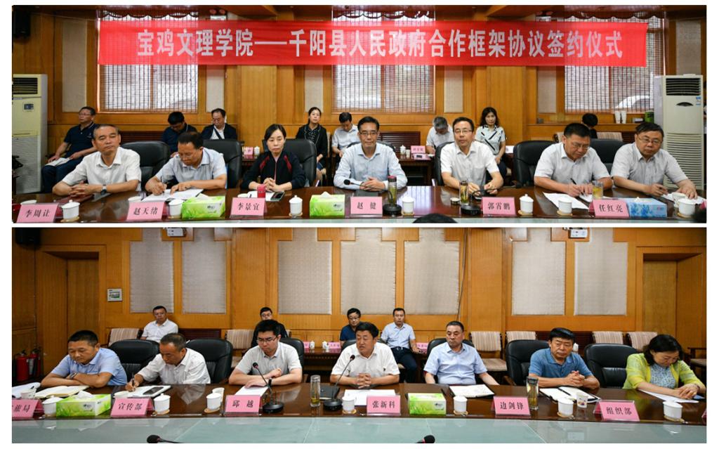 在随后召开的座谈会上,郭霄鹏、杨子元、李景宜向县上领导同志全面介绍了学校的发展历史、专业设置、学科建设、人才培养等方面的具体情况。千阳县县长张新科、陇县县长赵甲宏、扶风县县长齐军建分别介绍了三县县情,特别是历史文化、产业调整、教育事业、脱贫攻坚、旅游生态等经济社会发展各方面的情况。我校相关处室、学院和县级部门负责人围绕校地合作内容和方式进行了充分交流。我校与三县分别签订了校地合作协议。