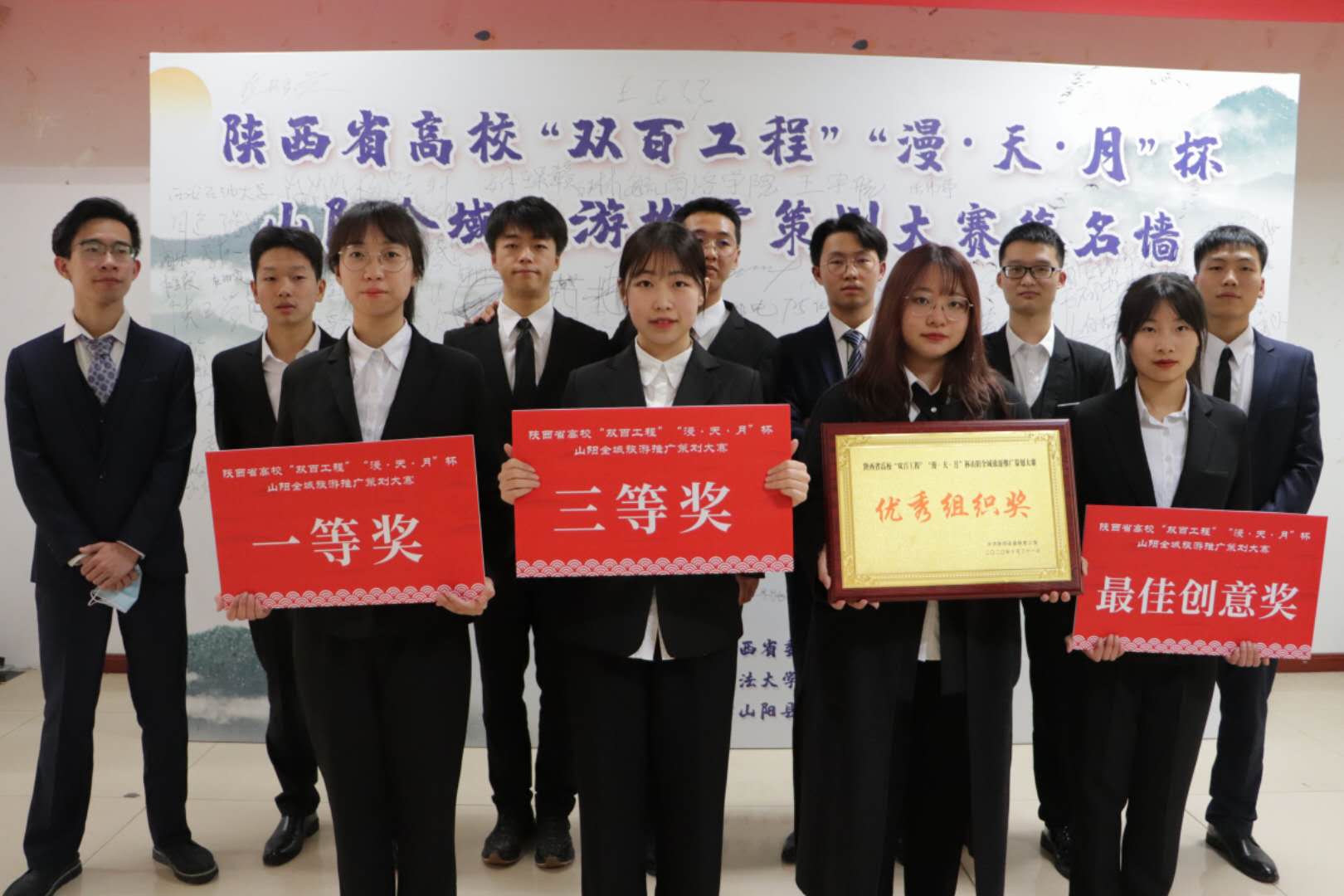 10月31日,陕西省高校“双百工程”“漫·天·月”杯山阳全域旅游推广策划大赛总决赛在西北政法大学举行,经过激烈角逐,由我校历史文化与旅游学院副院长赵建昌指导、15名学生组成的3支参赛队伍脱颖而出,获一等奖、三等奖、优秀组织奖及最佳创意奖4项奖项的好成绩。
