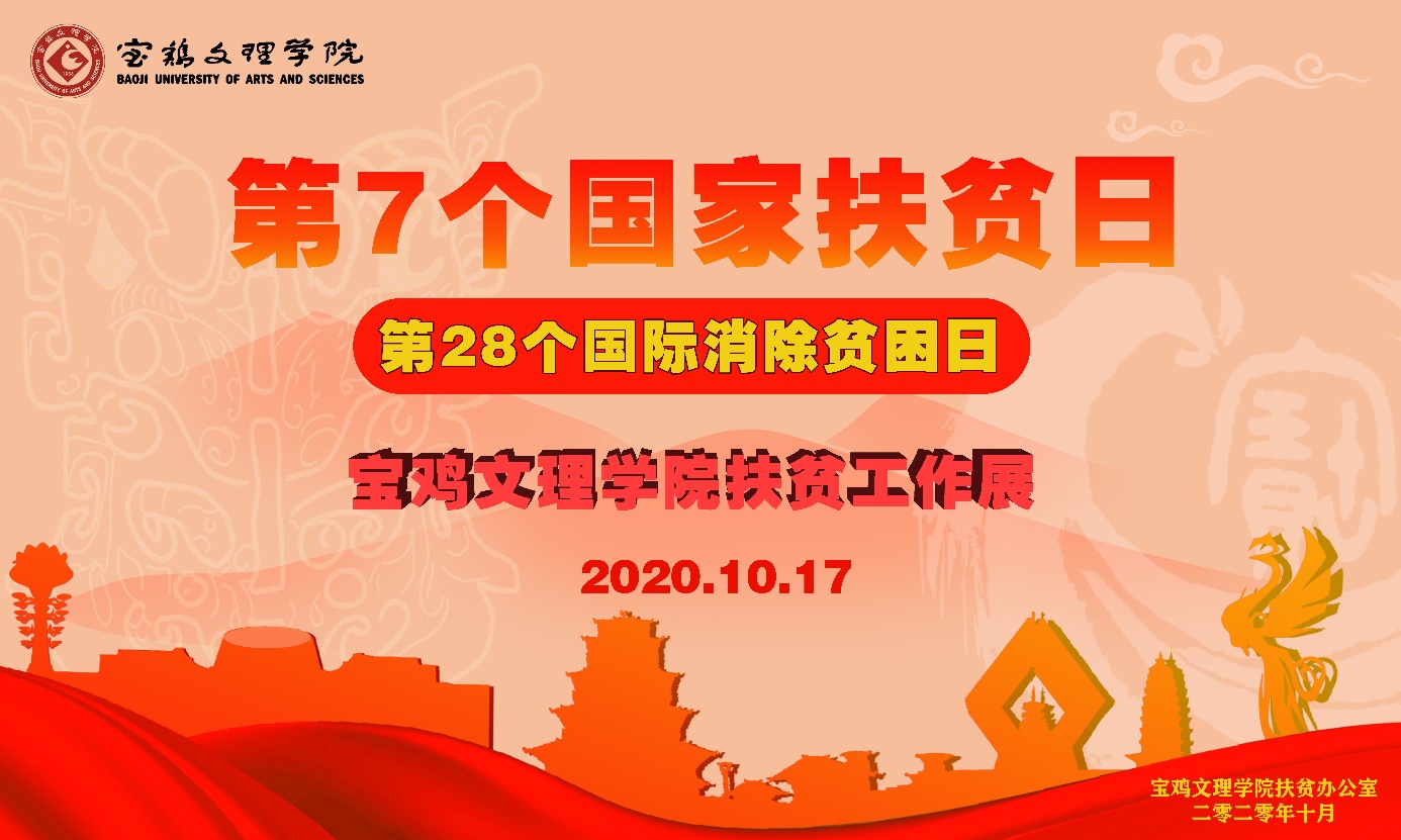 2020年10月17日,是第7个国家扶贫日,也是第28个国际消除贫困日,为充分调动广大师生更加积极投身脱贫攻坚工作,学校先后开展了扶贫工作图片展、帮扶县区农产品进校园推介销售、“双百工程”帮扶、观看《决战的时刻-2020年全国脱贫攻坚奖特别节目》等系列活动。