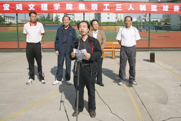 为了进一步推动全民健身活动,增进教职工的联系和友谊,经过较长时间的筹备和周密组织,由院工会主办、体育系分会承办的宝鸡文理学院2009年教职工三人制篮球赛于5月15日至17日举行。5月15日下午在学院老校区篮球场举行了开幕式。院长王志刚、党委副书记、工会主席李全武参加了开幕式。开幕式由院工会副主席郭俊理同志主持。