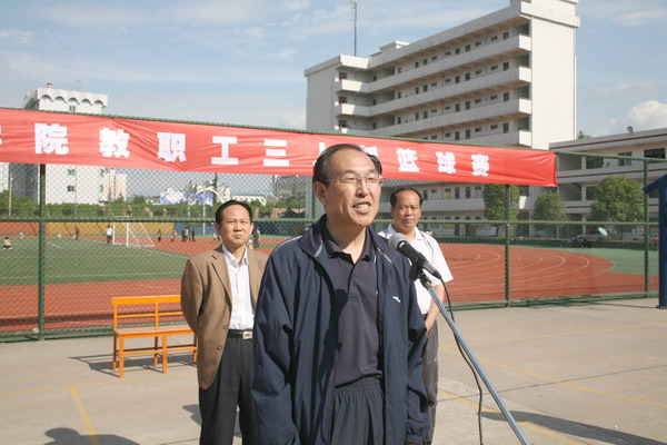 李全武在开幕式上致词。他说,本次全院教职工三人制篮球赛,是近年来规模最大、参与人数最多的球类赛事,有27个基层工会的43支中、青年篮球队,共计258名运动员参加。各代表队中有学院及各单位的党政领导,也有工作在一线的教师和干部职工,希望通过本次比赛,进一步增进教职工的交流和友谊,不断提高我院教职工篮球比赛的竞技水平;各代表队要遵守比赛纪律,服从比赛安排,尊重裁判,文明比赛;裁判员要严格履行公开、公平、公正的原则,尽职尽责,秉公执法,确保比赛顺利进行;全体运动员要发扬“友谊第一、比赛第二”的良好体育道德风尚,努力拼搏,赛出友谊,赛出风格,赛出水平,预祝篮球赛圆满成功。