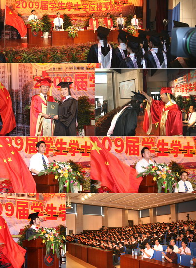 王志刚为毕业生颁发了学士学位证书。傅志军、赵荣侠分别为全院17个系的的毕业生扶正流苏、整帽拨冗。杨子元主持学士学位授予仪式。各系党总支书记主持学位证书颁发仪式。