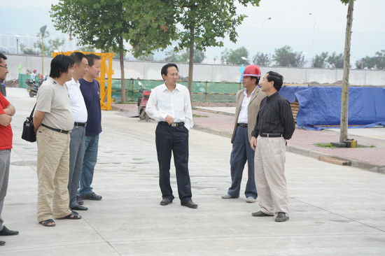 王院长在施工现场首先对基建处等有关部门在主管院领导的领导下,在暑假期间放弃休息时间不辞辛苦、努力工作表示感谢和慰问。王院长分别查看了三栋楼的地基处理情况,并详细询问了有关施工细节。对施工单位、监理单位的领导和工作人员表示慰问。