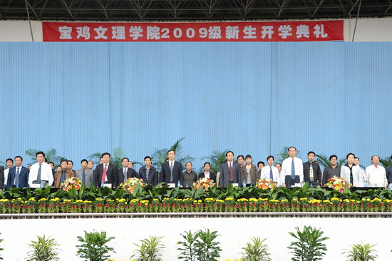 9月7日上午,我院2009级新生开学典礼在新校区体育场隆重举行。院党委书记赵怀礼,院长王志刚,党委副书记米晓东、李全武,副院长王普藩、赵荣侠,各系(部)党总支书记、系主任、各职能部门主要负责人以及4700多名新生参加了开学典礼。典礼由院党委副书记李全武主持。