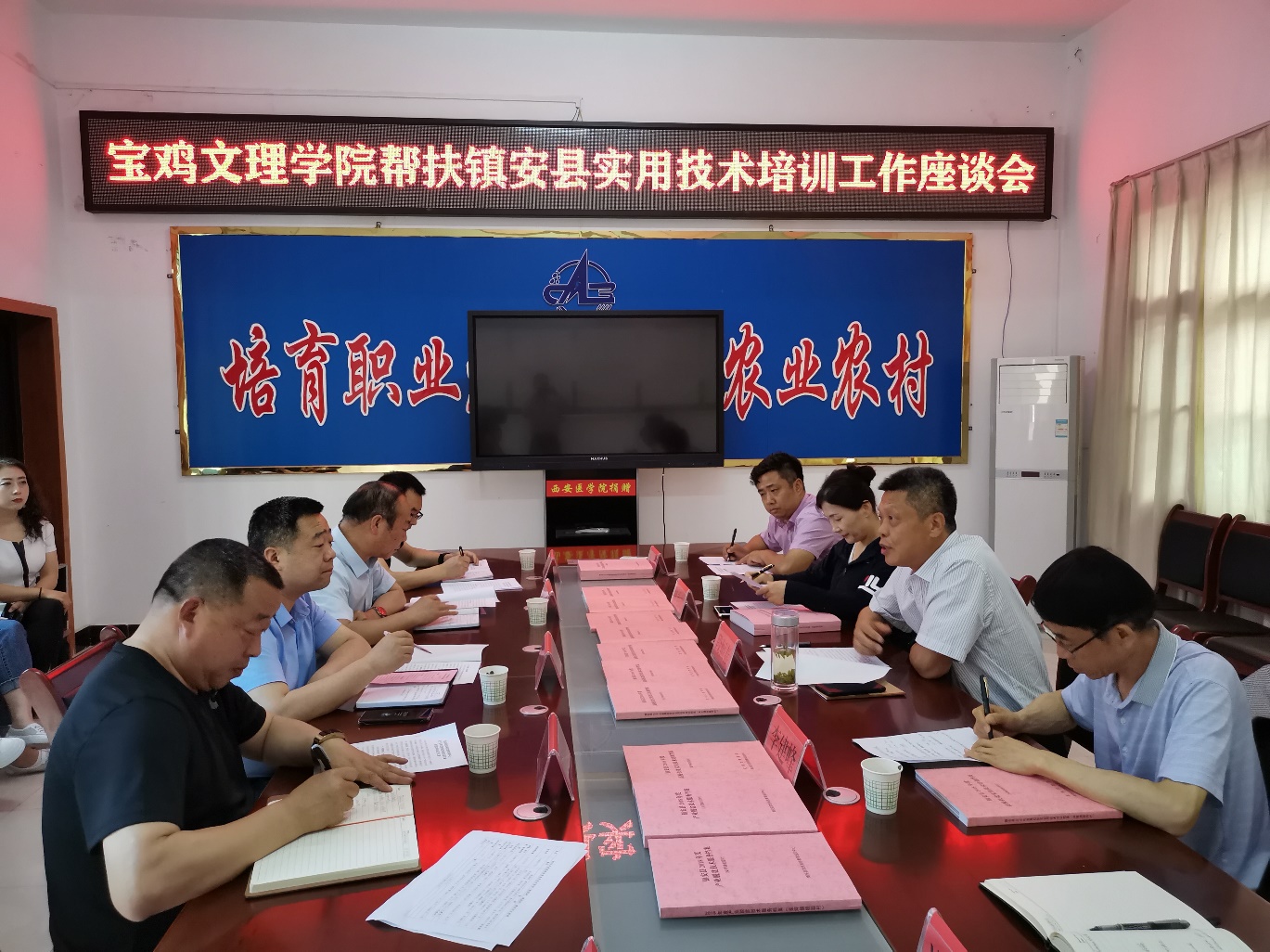 段恒春一行与镇安县相关人员在县农业科技教育培训中心召开座谈会,镇安县人民政府办公室副主任黄承波、县农业农村局副局长(畜牧中心主任)沈晓林、县农业科技教育培训中心主任张祖平等有关人员参加座谈,座谈会由我校继续教育学院院长姚艳梅主持。会上,张祖平汇报了我校2018年3月份以来在镇安县柴坪镇桃园村和米粮镇清泥村、丰和村3个培训基地开展的当地特色产业农民工实用技术培训工作,并对资金使用情况作了说明,充分肯定了学校培训工作所取得的实效。姚艳梅对2020年培训工作进行了安排部署。