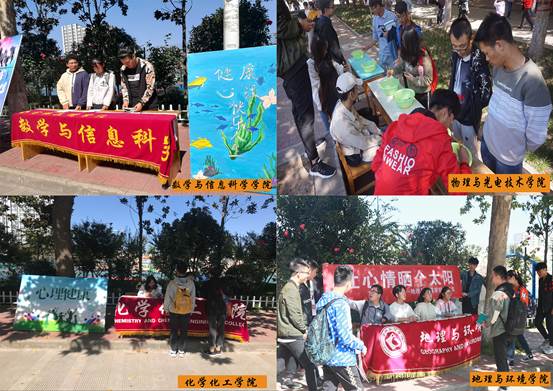 宣传活动现场,心理咨询中心老师与各二级学院学生进行了互动交流,向在场的学生介绍了我校大学生心理健康教育与咨询中心情况并派发了宣传品。各二级学院通过摆放宣传板、悬挂宣传横幅、分发宣传品等方式宣传普及心理健康知识。随后,各学院学生代表参与了心理健康保健知识的宣传学习、心理及生理健康现场咨询,并体验了“爱拼才会赢,不疼怎么行”、“我走我的路”、“飞舞的羽毛”、“快乐搬家”等团体心理游戏。活动现场气氛热烈,师生积极踊跃,参与热情高。同学们纷纷表示,“世界精神卫生日”宣传教育活动的开展,有利于提高师生对精神疾病的认识、分享科学有效的心理疾病预防知识、提高公众对精神卫生问题的认识水平。