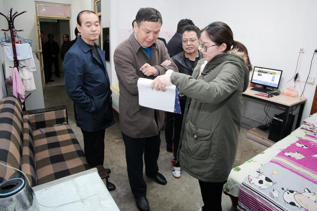 检查中,校领导仔细查看了辅导员值班日志,并与入住公寓辅导员、学生进行了亲切交谈,询问了辅导员入住公寓值班制度落实情况、周日晚点名、毕业班学生就业实习、本科生和研究生在宿舍学习生活、安全、卫生等情况。校领导对学生公寓管理工作给予了充分肯定,并就进一步做好学生公寓教育管理工作提出了具体要求,一是相关职能部门、各院系要高度重视学生公寓管理工作,院系领导要定期深入学生公寓,加强监督检查,切实保障学生安全;二是入住学生公寓辅导员要继续保持良好的工作作风,切实履行岗位职责,将公寓各项工作做细做小做实;三是要加大安全隐患排查力度,教育学生注意宿舍用电安全,加强对毕业生的教育管理,提醒毕业生注意就业实习过程中人身财产安全。