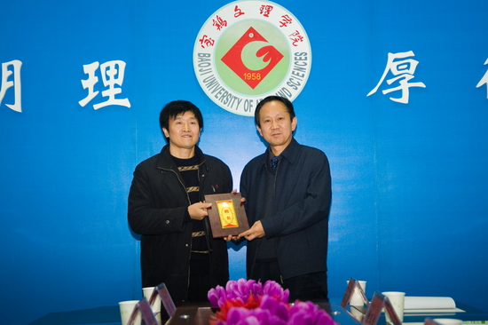 王志刚首先代表学院对石村教授受聘为我院兼职教授表示欢迎。他从学院历史、教师队伍、学科建设、区位优势、制度管理、人才培养、评估获优、发展中的大学等八个方面简要介绍了我院的基本概况。石村教授对受聘为我院兼职教授感到荣幸,并表示在以后的工作中加强合作,尽自己最大努力为我院学科建设和美术系的发展作出贡献。随后,王志刚向石村教授颁发了聘书。