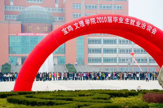 12月12日,我院2010届毕业生就业洽谈会”在新校区举行。此次洽谈会共邀请到了来自北京、上海、广东、江苏、福建、浙江、吉林、山东、山西、四川、青海、新疆、陕西等13个省市的教育、传媒、广告、旅游、机电、生物、化工、计算机等行业的用人单位和各类高新技术企业326家,与会代表700余人,共提供就业岗位3500余个。我院2010届4564名毕业生参加了双向选择和洽谈。