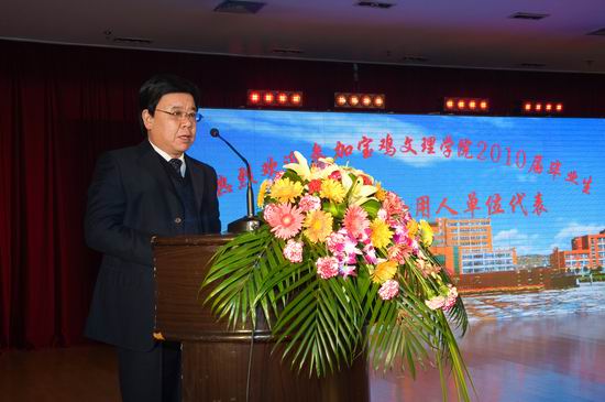 11日晚,学院举行欢迎仪式。院长王志刚、院党委副书记米晓东、副院长傅志军等参加欢迎仪式。院长王志刚致欢迎辞,院党委副书记米晓东主持欢迎仪式。院长王志刚在讲话中指出,本届毕业生是我校实施新的人才培养方案后的第3届毕业生,他们基础扎实、知识结构合理、学风优良,具有较强的创新精神和实践能力,综合素质较高。学院为洽谈会推荐的毕业生在专业、人数、质量等方面能够满足用人单位的需求。他衷心希望各用人单位能够选聘到自己满意的毕业生。院毕业生就业指导服务中心主任李周让通报了2010届毕业生的基本情况和洽谈会准备情况。在欢迎仪式前,2010届毕业生表演了精彩的文艺节目。