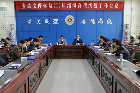3月25日下午,学院在新校区甘棠厅召开了2010年组织宣传统战工作会议。院党委书记赵怀礼出席会议并讲话。院党委副书记李全武主持会议。