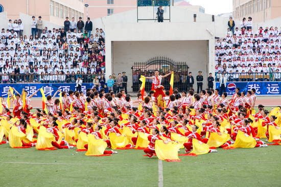 在开幕式和闭幕式上,我院大学生大型歌舞表演《青春节拍》、团体操表演《绽放2010》、《鼓扇如火》和学生的歌唱表演为运动会增添了靓丽的色彩。