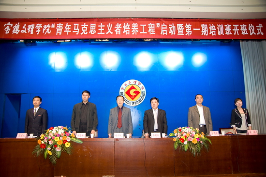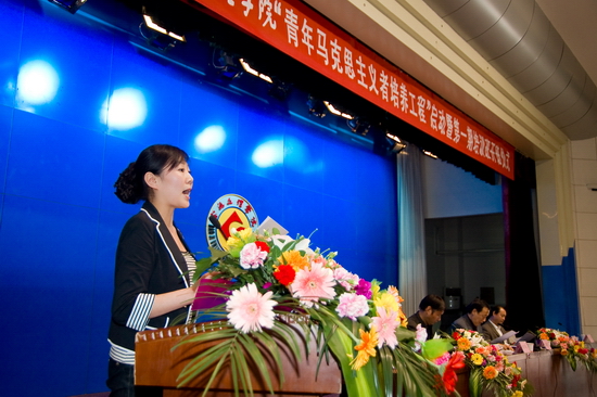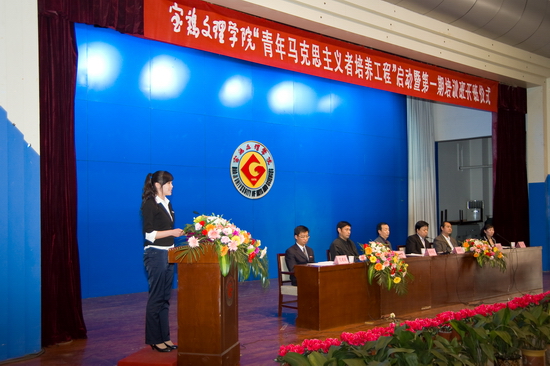 黄玮宣读了《共青团宝鸡文理学院委员会关于“青年马克思主义者培养工程”的实施意见》及第一期培训班班主任和学员名单。哲学系副主任、思想政治理论教学科研部副主任何振鹏代表讲师团发言,中文系学生曾博娅代表第一期培训班学员发言。