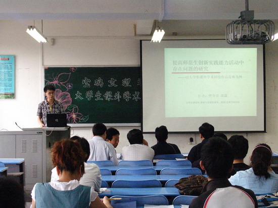 本次大赛共收到参赛作品155件(篇),其中社科类调查报告和学术论文110篇,自然科学类学术论文14篇,科技发明制作类作品31件。经过团队陈述和评委提问两个环节的激烈角逐,历史系张龙撰写的《秦岭在陕西文化中的价值与思考》、中文系许珊撰写的《媒体服饰话语对女性消费心理的影响》、哲学系长孙大盟撰写的《尊德性与道问学之新观》获得社科类一等奖,数学系何苗调研的《宝鸡市公交车调度方案》获得自然科学类一等奖,物理系魏昭开发的《实用多功能语音识别控制系统》获得科技发明制作类一等奖。同时还有15件(篇)作品获得了大赛二等奖,30件(篇)作品获得了大赛三等奖。中文系、物理系、哲学系荣获本次大赛优秀组织奖。(院团委供稿)