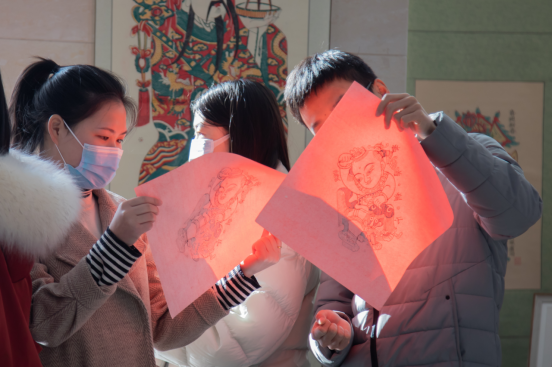 活动现场,邰立平先生手把手教同学们印制年画,刷墨、落纸、压纸、起纸,一个墨色柔和、线条流利匀称、造型清秀可爱的“纳祥童子”跃然纸上,让大家爱不释手,一张大红“福”字,让活动现场洋溢着喜庆的氛围。现场师生纷纷表示,春节临近,印张“福”和“纳祥童子”,把福气带回家,把幸福带回家,和家人一起感受中国传统文化的独特魅力,领略中华文化的博大精深。