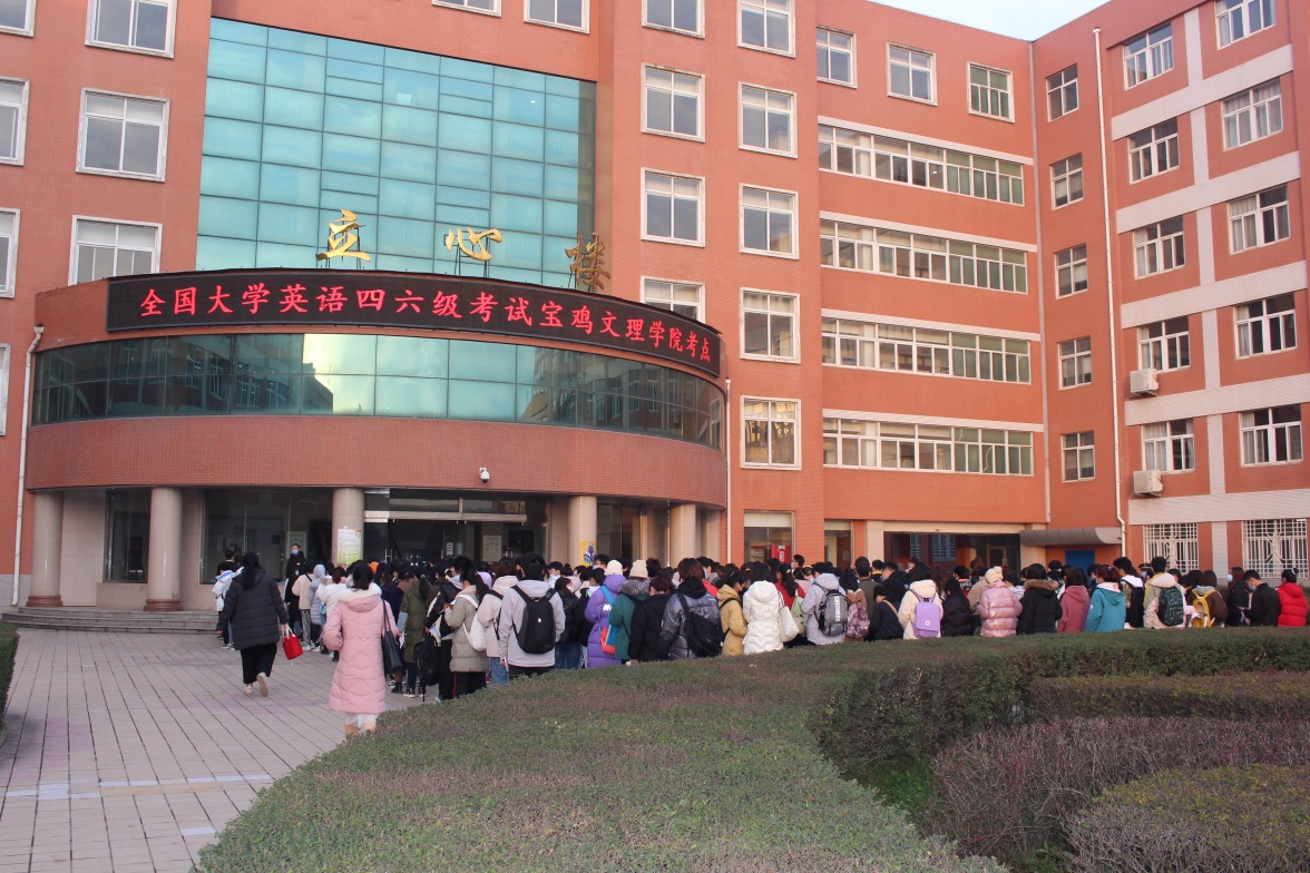 12月12日,2020年下半年全国大学英语四、六级考试宝鸡文理学院考点考试工作顺利举行。我校共有7190名考生参加了考试,其中四级5051人、六级2139人。四级考试设169个考场,六级考试设72个考场,安排监考和考务人员500余人次。