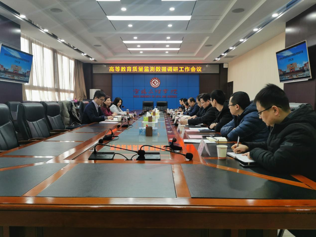 教学质量监控与评估中心主任刘景世汇报了我校高等教育质量监测数据采集与填报工作,并提出了意见和建议。相关职能部门负责人围绕高等教育质量监测数据的指标理解、数据填报、数据应用及专业评估、课程评估等方面进行了交流。