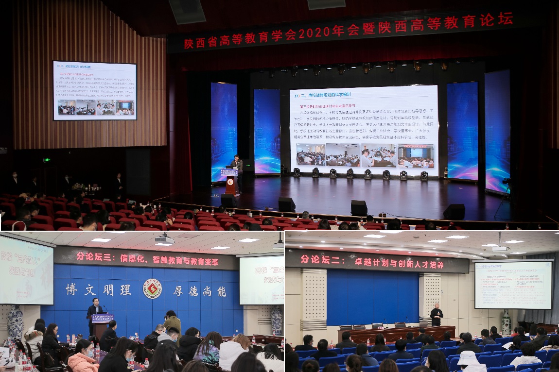 会议期间,举行了三个平行论坛,分别围绕“十四五”战略规划理论研究与实践探索、卓越计划与创新人才培养和信息化、智慧教育与教育变革等三个主题展开讨论,19位专家作了专题报告。陕西省高等教育学会副会长、西安培华学院校长李映方,陕西省高等教育学会副会长、西北政法大学党委副书记李平安,我校教育学院院长茹宗志分别主持三个平行论坛。11月27日晚,召开了研究生论坛,我校科研管理处副处长马多秀主持论坛。会议还表彰了陕西省高等教育学会优秀学会工作者,我校发展规划处副处长周国栋荣获“优秀学会工作者”称号。