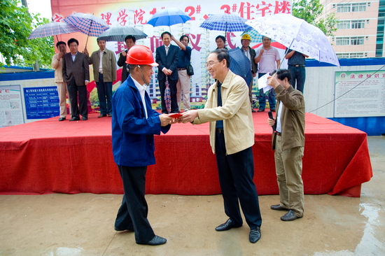 5月26日上午,我院隆重举行新校区高层住宅楼主体封顶仪式。院长王志刚,院党委副书记、纪委书记米晓东,院党委副书记、工会主席李全武,副院长傅志军、王普藩、赵荣侠等出席封顶仪式。院高层住宅楼工程建设领导小组、招标领导小组、分房委员会成员,教职工代表,工会各分会代表,相关部门负责人及基建处现场管理人员,华盛公司、中安监理、通州建总、广厦建设集团现场负责人和相关技术人员等参加封顶仪式。基建处处长刘宗杰主持封顶仪式。