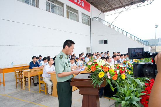 7月10日下午,我院2009级学生军训动员大会在新校区体育场隆重举行。院党委书记、院长王志刚,院党委副书记、军训领导小组组长米晓东,院党委副书记李全武,副院长傅志军、赵荣侠以及中国人民解放军96401部队副团长陈忠述、通信团参谋赵明等出席大会并在主席台就坐。在主席台就坐的还有各系(部)党总支书记、系主任及各职能部门主要负责人。2009级4574名学生以及承担我院学生军训任务的96401部队军训团全体官兵参加了会议。动员大会由学院武装部部长任红亮主持。