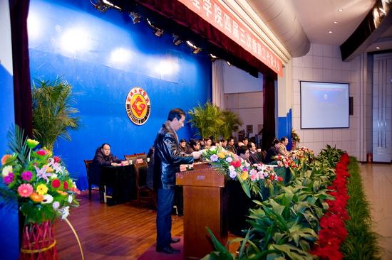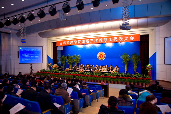 12月30日,我院四届三次教职工代表大会在新校区音乐厅隆重举行。院党委书记、院长王志刚,党委副书记米晓东、李全武,副院长傅志军、王普藩、赵荣侠等出席大会。145名正式代表,12名特邀和列席代表参加了本次大会。大会主要议题是听取、审议院长工作报告;审议《宝鸡文理学院十二五及中长期发展规划》(草案);听取和审议三个部门的校务公开工作报告和四届二次教代会提案落实情况的报告。大会开幕式由李全武主持。
