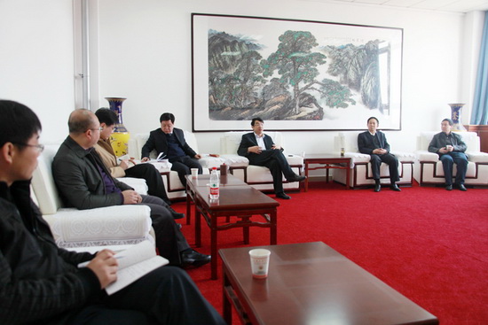 院党委书记、院长王志刚与省教育厅师资与师范教育处处长罗侃淳(左一)会谈