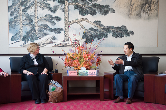 4月29日至30日,美国俄亥俄州穆斯静冈大学(Muskingum University)负责国际交流事务的Jerry Martin教授、教育学院院长Joy Cowdery来我院访问。29日上午,我院副院长傅志军教授在新校区第一接待室会见了Jerry教授,傅志军首先代表学院向Jerry一行的到来表示欢迎并表示我院愿意与穆斯静冈大学在平等协商的基础上开展互派访问学者、互派本科生学习、接受我院优秀毕业生赴该校攻读硕士学位、合作科研等教育交流与合作项目。Jerry教授也应邀介绍了穆斯静冈大学的基本情况和希望与我院开展的合作项目,他认为宝鸡文理学院和穆斯静冈大学同为师范类院校,在很多方面具有相似性,有广阔的合作空间,他希望通过两校的领导互访和教师交流架起双方在其他领域合作的桥梁。Jerry教授与Joy院长随后与我院科技处处长吴毅、外语系主任党明虎、教育系主任王富平、教务处副处长孙新等我院相关部门领导就该校研究生课程设置、学分管理、托福考试、学分转换、学历学位授予、以及开展科研合作的可能性等进行了充分的探索与交流。