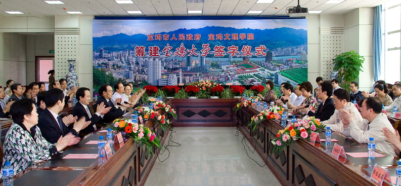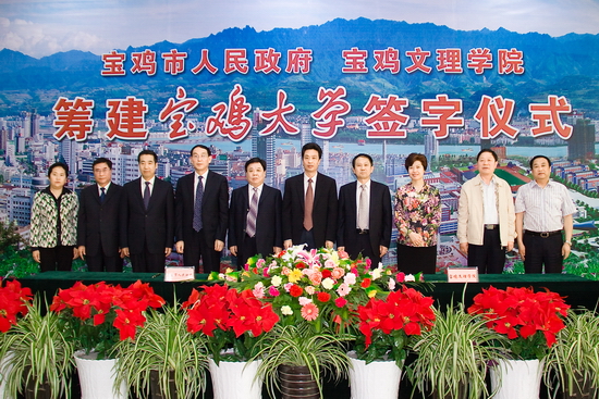 《备忘录》提出了筹建宝鸡大学的重要性和必要性,并就筹建工作进行了具体安排:2011年---2012年,高质量完成宝鸡文理学院“新增硕士学位授予单位立项建设高校”建设期各项任务,确保2012年顺利通过国家验收,开展研究生教育,提升办学层次;2013年----2015年,按照国家大学设置的相关要求,加大投入与建设力度,基本完成各项建设任务,为更名申报工作奠定坚实基础;2016年----2020年,进一步完善优化宝鸡文理学院办学条件,增强办学实力,加大宣传力度,扩大社会影响,积极争取各级领导和社会各界的大力支持,申报更名并实现挂牌,成为我市唯一一所综合性大学。