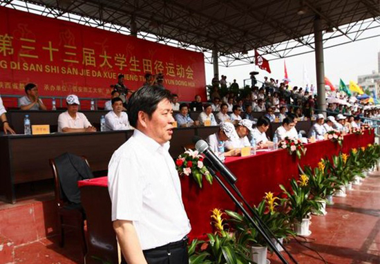 省委教育工委副书记、省教育厅厅长杨希文宣布陕西省第33届大学生田径运动 会开幕