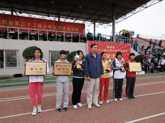 2011年5月18日至5月21日,由陕西省教育厅、陕西省大学生体育协会主办的陕西省第33届大学生田径运动会在西安理工大学曲江校区举行。本次运动会共有来自全省68所院校的75支代表队参赛,1600余名大学生运动员共进行了22个项目、8个组别的角逐,我院由体育系主任吴长稳任领队的代表队参加了普通组和体育院系组的比赛,经过四天紧张激烈的角逐,我院田径运动队获体育院系组女子团体总分第六名,男子团体总分第七名,男女团体总分第七名,业余女子获得团体第九名的优异成绩,并获得体育道德风尚奖。