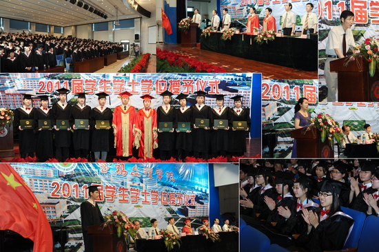 各系主任和教师代表发表了热情洋溢的致辞。2011届各系学生代表作了发言。奏校歌仪式后,2011届毕业生学士学位授予仪式圆满结束。(教务处供稿)
