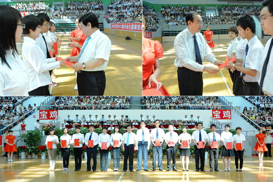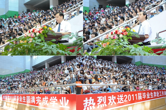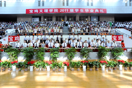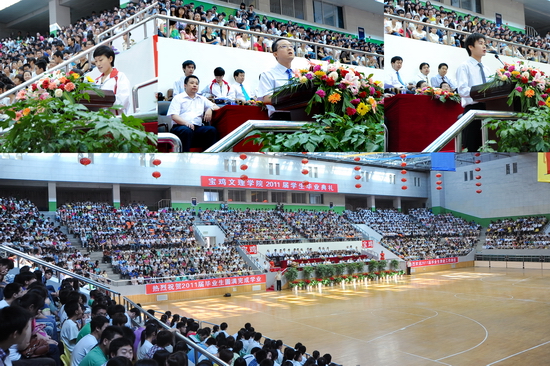 6月27日上午,我院2011届学生毕业典礼在宝鸡市体育馆隆重举行。宝鸡市体育局局长李富生应邀出席毕业典礼。院党委书记、院长王志刚,院党委副书记米晓东、李全武,副院长傅志军、王普藩、赵荣侠等出席毕业典礼。各部门、各单位负责人、全体毕业生及在校生代表共4000多人参加了毕业典礼。毕业典礼由傅志军主持。