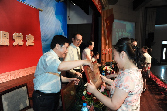 会上,李全武宣读了学院党委关于表彰先进党总支、先进党支部、优秀共产党员、优秀党务工作者的决定。院领导为获奖单位和个人颁发了奖牌和证书。
