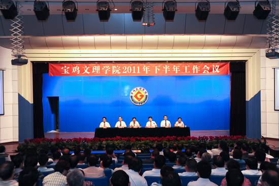 王志刚在大会发表了题为《再接再厉 开拓创新 为全面完成2011年各项工作任务而奋斗》的重要讲话。他在首先大会上传达了陕西省高校工作咨询委员会第七次全体会议精神和省委副书记王侠与副省长朱静芝的重要讲话精神。其次,他对对上学期党政主要工作作了简要回顾与小结,并对上半年党政工作给予了充分肯定,主要有八个方面的成效:一是加强党的建设,党员干部和师生员工的思想素质得到进一步提高;二是积极实施教学质量六大工程,教育教学和人才培养质量稳步提高;三是扎实开展新增硕士学位授予单位建设工作,顺利通过中期检查;四是强化人才队伍建设,教师队伍整体水平持续提高;五是强化学生教育与管理,大学生综合素质进一步提高;六是强化后勤管理与服务,后勤保障能力不断提高;七是完成学院“十二五”专项发展规划编制工作,宝鸡大学筹建工作正式启动;八是强化安全保卫工作,学院安全稳定。