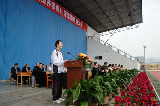 陕西省教学名师、物理系主任袁都奇教授代表全体教师在大会上作了发言。化学化工系2010级学生卢嘉辉代表在校生、中国语言文学系2011级新生刘璐璐代表全体新生在大会上分别作了发言。(教务处供稿)