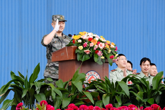 院党委副书记、军训工作领导小组组长米晓东宣布了军训团干部任职命令。军训团团长张智华宣布了营、连干部任职命令。院党委书记、院长王志刚为军训团授旗。