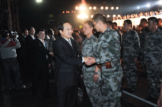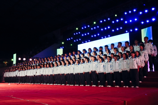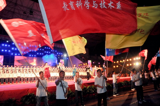 学院各职能部门、各系(部)负责人,军训团全体教官与全院2011级新生6000余人观看了晚会。(党委宣传部供稿)