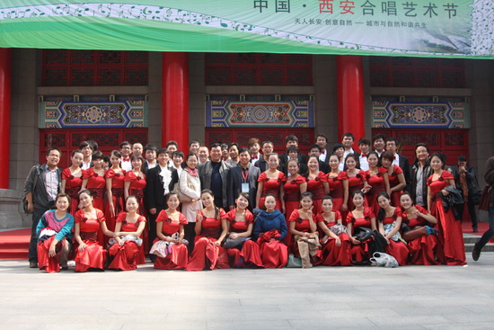 10月2日至6日,由2011西安世界园艺博览会执委会主办,中国合唱协会、陕西省音乐家协会、西安浐灞生态区管委会和西安世园投资(集团)有限公司承办的“相约世园·放歌浐灞”中国·西安合唱艺术节在西安人民剧院举行。来自全国各地70余支合唱队分组依次登台参赛。我院音乐系爱乐合唱团一行52人在音乐系主任、合唱团团长贺星,音乐系党总支书记赵英杰、音乐系副主任魏安石和合唱团副团长、指挥白壮及陈颖的带领下,参加了成年组(院校)的决赛。