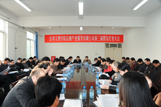 11月20日上午,宝鸡文理学院后勤产业服务有限公司在新校区后勤公司会议室召开了第三届股东代表大会。大会听取了龙军权同志代表公司第二届董事会所作的工作报告和刘锡让同志代表第二届监事会所作的监事会工作报告,并以举手表决方式,一致通过了两个工作报告;大会表决通过了《宝鸡文理学院后勤产业服务有限公司选举办法》和《宝鸡文理学院后勤产业服务有限公司投资管理办法》;大会还以投票方式,选举产生了公司第三届董事会、监事会。新的一届董事会由龙军权、李发林、陈来应、贾卫忠、赵健五位同志构成,监事会由张鹏、邓忠良、杨文杰三位同志构成。41名股东代表参加了会议。