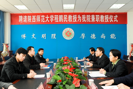 11月25日上午,我院在新校区第一会议室举行了聘请陕西师范大学程鹏民教授为我院兼职教授仪式。院党委书记、院长王志刚出席会议并讲话,副院长赵荣侠主持会议。