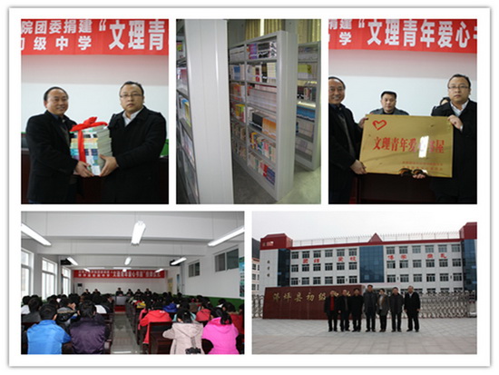 授牌仪式上,蔚文波代表县委、县政府向“文理青年爱心书屋”的建立表示祝贺,向宝鸡文理学院团委和全院青年团员对地方共青团工作的支持表示感谢!他指出,为改善佛坪县的办学条件,帮助贫困山区孩子更好地拓展视野、增长知识,学院团委在全院团员青年中开展“缴纳特殊团费,奉献一片爱心”捐建佛坪文理青年爱心书屋活动,这是对佛坪教育事业的极大支持。他说,文理爱心书屋的建成,必将进一步丰富佛坪县初级中学学生课余文化生活,对于推动佛坪教育事业均衡发展有着重大意义。他表示:佛坪县委、县政府期待宝鸡文理学院能够一如既往地关心支持佛坪的教育事业,开展双方进一步的合作,促进共同发展。