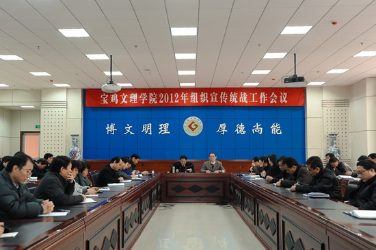 3月8日下午,学院在新校区甘棠厅召开2012年组织宣传统战工作会议。院党委书记、院长王志刚出席会议并讲话。院党委副书记李全武主持会议。