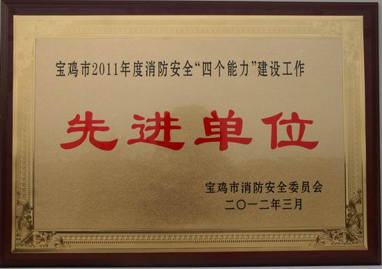 在4月1日召开的全市消防工作会议上,我院被宝鸡市消防安全委员会授予全市社会单位消防安全“四个能力”建设工作先进单位称号。(保卫处供稿)