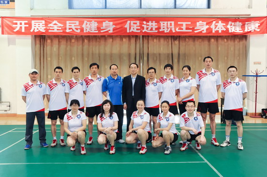 在仪式上,张鹏代表院工会对球队的成立表示热烈的祝贺,对在球队组建过程中付出辛勤工作的羽毛球协会及各位队员表示衷心的感谢!他对球队提出了要求和希望,希望院教职工羽毛球队不要辜负学院领导和全体教职工的期望,尽力展示我院教职工良好的精神面貌,将我院教职工文化体育活动推向高潮。我院成立了由郭俊理担任领队,龚明担任教练,王陆军、赵英杰、孙勇敏、樊晓仑、罗晓林、王力、路宝军、崔谦、张雷、翟小英、任慧琴、吴晓娥等为队员的学院教职工羽毛球队。