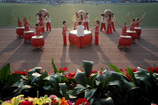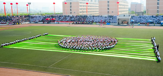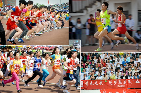 在开幕式和闭幕式上,我院大学生大型歌舞表演《时代·人文》、《舞动青春 魅力外语》、《墨舞丹青》和学生的歌唱表演为运动会增添了靓丽的色彩。